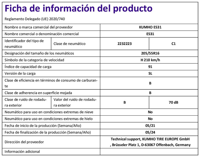 205/55 R16 91H Neumáticos de Verano KUMHO Ecowing ES31 Auto