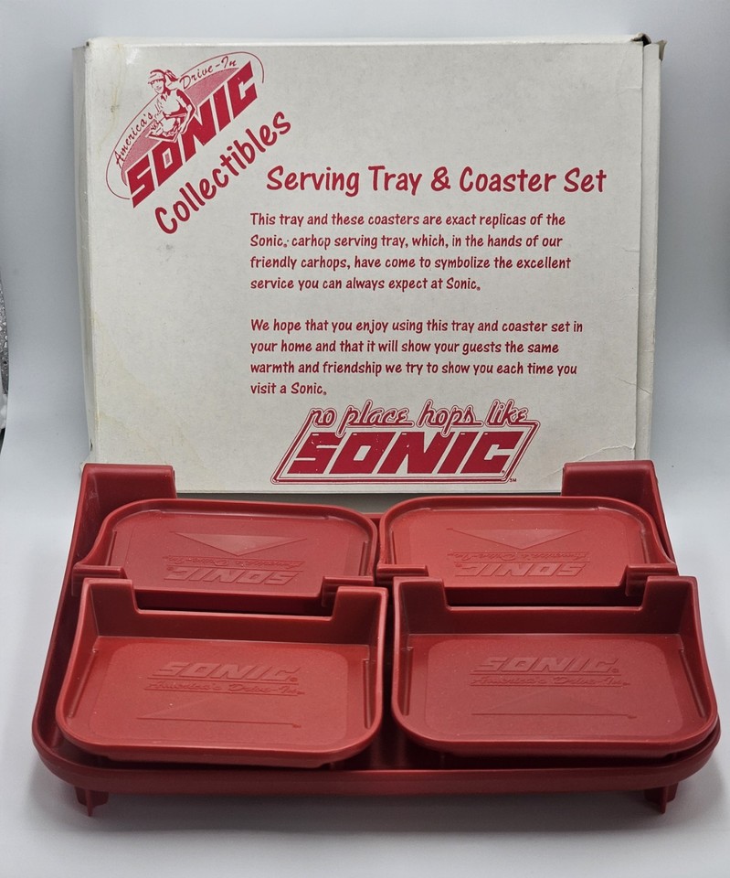 Juego de mini bandeja para servir y posavasos SONIC Drive-In Collectibles con caja original-