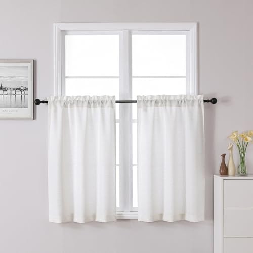 Bennet 24 Inch Short Curtains Half Window Curtains for Bedroom, Faux Linen