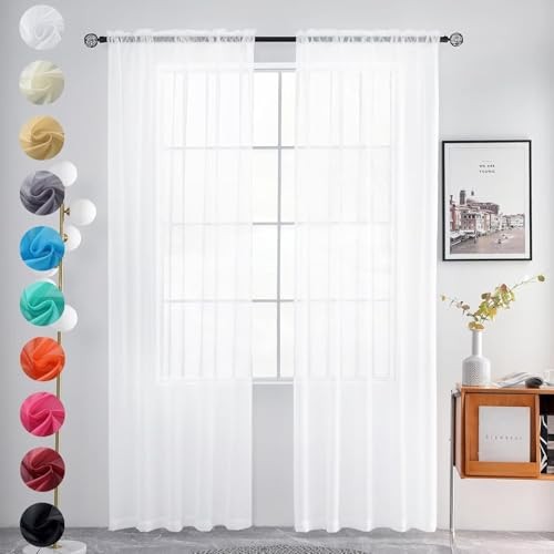Cortina de bolsillo de varilla transparente cortinas de gasa 52" W x 84" L (paquete de 2) óptica blanca-