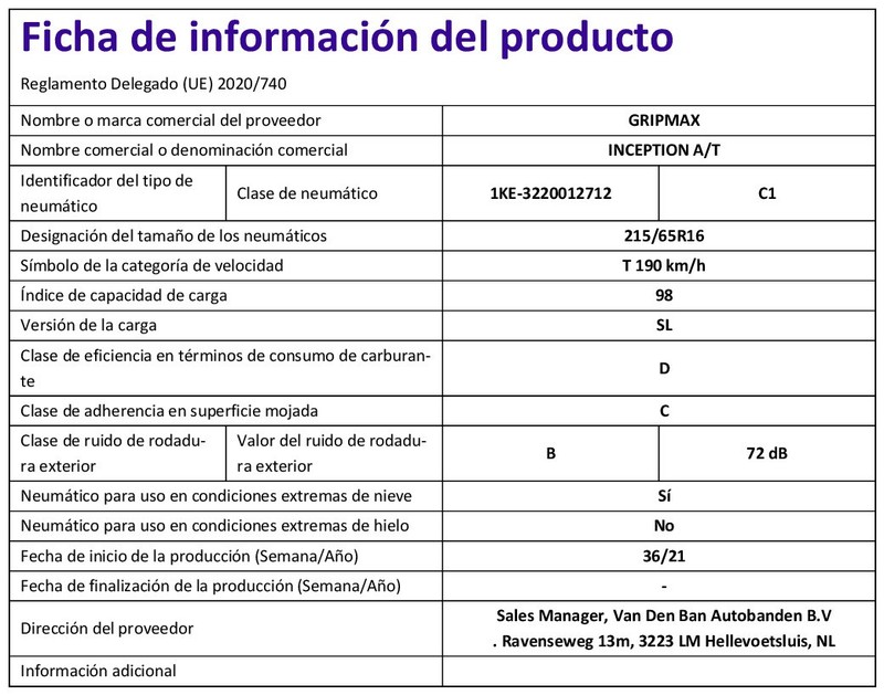215/65 R16 98T Neumáticos Todas las estaciones GRIPMAX INCEPTION