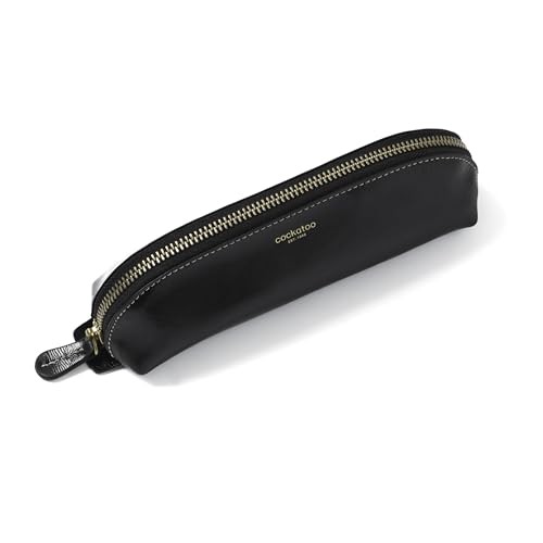 Estuche de lápices de cuero, estuche para lápices, estuche de papelería, lápiz con cremallera negro brillante-