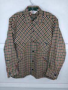 De Colección Años 70 Woolrich Cazadora a Cuadros Grande Verde A Presión Frontal Diente de Sierra Bolsillos Usada en Excelente Condición -