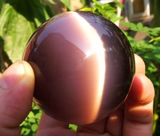 Raro Natural Cuarzo ASIÁTICO OJO DE GATO CRISTAL BOLA CURATIVA ESFERA 40MM+ Soporte-