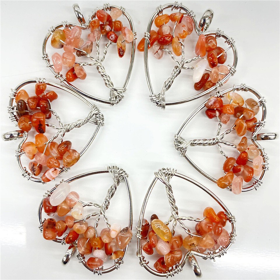 Colgantes envueltos en alambre árbol de la vida corazón piedra ágata roja natural 30 mm 50 un.-