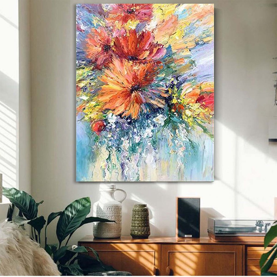Lienzo hecho a mano personalizado abstracto pintura al óleo flor decoración del hogar colgante-