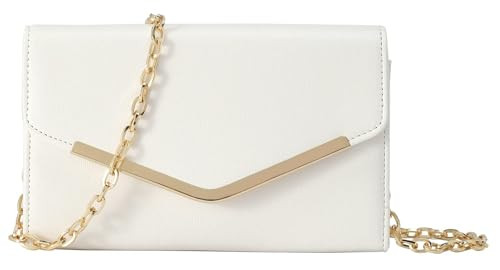 Bolso de Noche para Mujer Sobre Bolso sin asas Cartera Cadena Desmontable Bandolera Bolso Blanco-