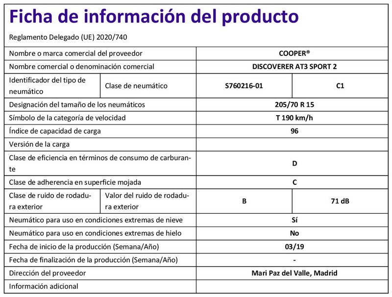 205/70 R15 96T Neumáticos Todas las estaciones COOPER Discoverer