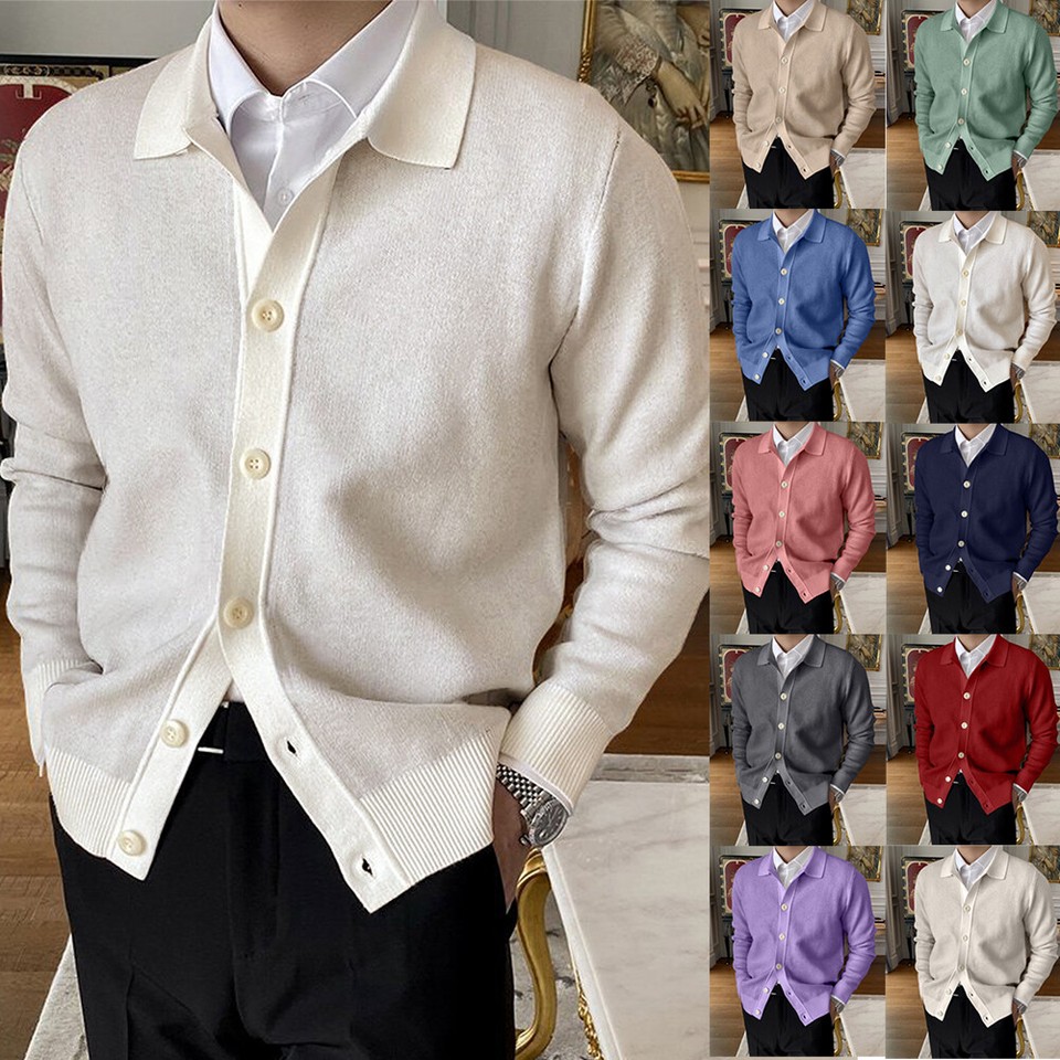Cárdigan de punto informal para hombre suéter de manga larga color liso cálido abrigo con botones EE. UU.-