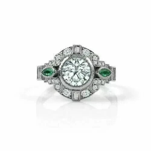 Anillo de compromiso de plata 925 con esmeralda y creado en laboratorio estilo Art Deco de 2 quilates-