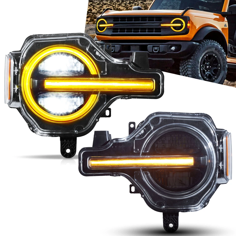 Faros LED VLAND FULL para Ford Bronco 2020-2023 lámparas delanteras LED amarillas DRL-