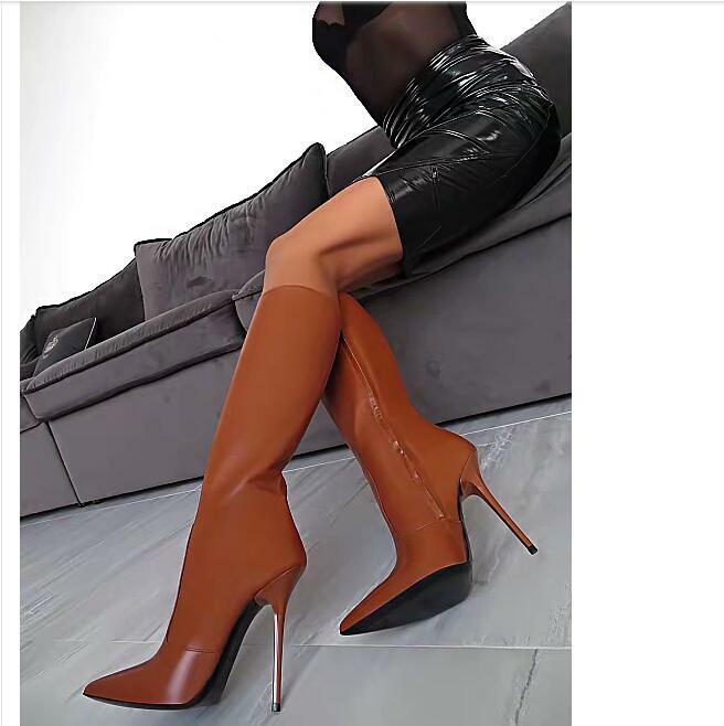 Sexy Mujeres Botas Hasta la Rodilla Punta Punta Punta Lateral Cremallera Stiletto Tacón Alto Etapa Talla 35-47-