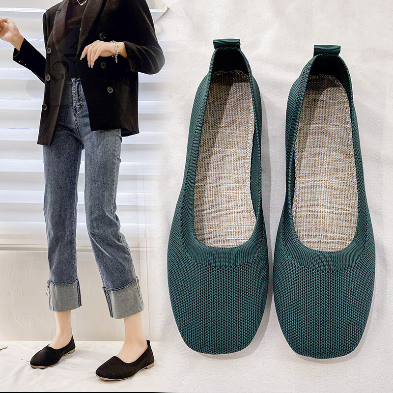 Zapatos planos perezosos tejidos para mujer zapatos individuales cómodos zapatos deportivos caminar informales-