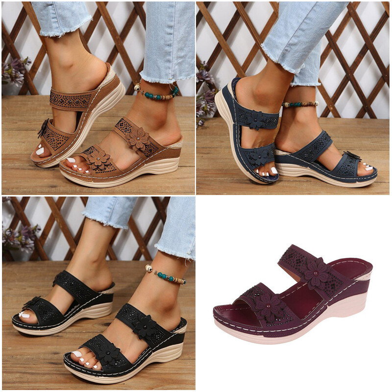 Sandalias de tacón de cuña para mujer Zapatillas de verano Informales Damas Zapatos sin cordones Mules Pump-