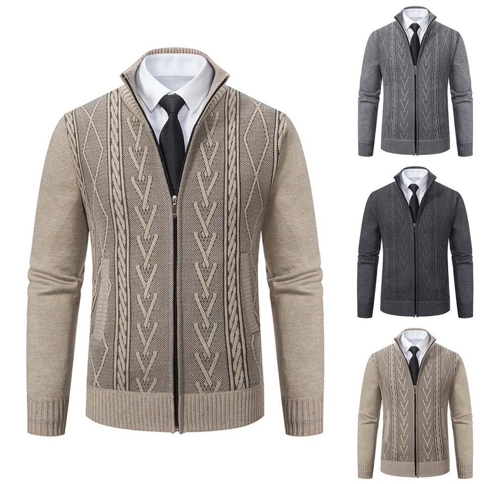 Cárdigan Suéter Para Hombre Cuello Soporte Calce Ajustado Cremallera Completa Cable Tejido Suéter Abrigo-