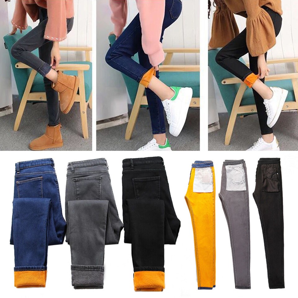 Pantalones de mezclilla elásticos forrados de vellón cálidos para mujer Leggings térmicos de invierno-