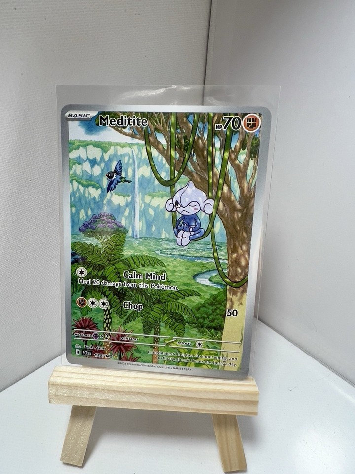 Meditite 153/142 Ilustración Raro Holo Pokemon Tarjeta SV Corona Estelar Casi Nuevo 2 SR-