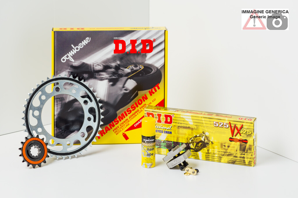 The transmission gears of the DID GP racing kits consist of: professional Ergal 7075 T6 crown and steel pinion, both high hardness. We dedicate this product to demanding motorcyclists who want to change the final rapport of their motorcycle while maintaining the OEM quality standard that only DID can provide.