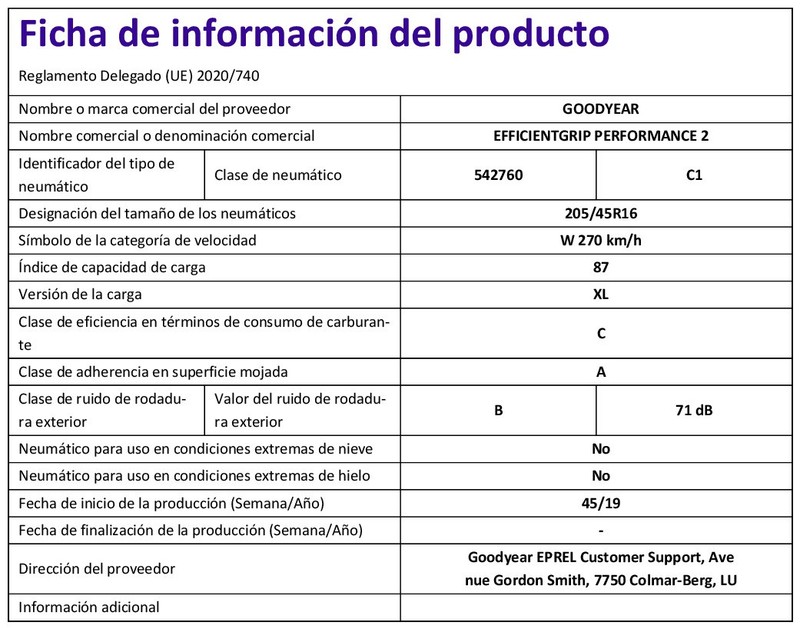 artículo 3 NEUMATICOS DE VERANO GOODYEAR 205/45 R16 87W EFFICIENTGRIP PERFORMANCE 2 XL