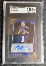 🔥2021 Clearly Donruss MAC JONES Rated Rookie RC Auto Patriots SGC 9 Auto 10 🔥. Great eye appeal on this card with the SGC “tuxedo” look with the clear background of the card. Thanks for looking!