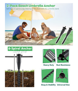 APTO 1.3"-2.2" Diámetro PLAYA Paraguas Bandera Soporte Varilla Anclaje de tierra resistente