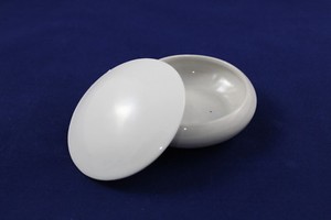 Cajita Joyero de porcelana vidriada blanca, sin sello. Ø 8cm