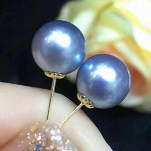 Rare Huge 12mm Purple South Sea Shell Pearl 14k gold Earrings Gift Fashion Diy