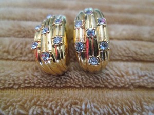 "Pendientes perforados vintage de 1"" beige lucite imitación azul ópalo y cristal estrás"
