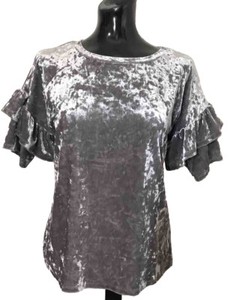 Camiseta Mossimo Talla Pequeña Gris Plateado Terciopelo Aplastado - Manga Corta Mangas Volantes 4,34 EUR