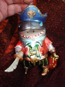 Pierna de clavija Robert Stanley, mano de gancho, bolso botín, lindo adorno de vacaciones pirata tiburón