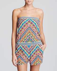 NUEVO CON ETIQUETAS $150 Traje de baño Trina Turk peruano a rayas bandeau mameluco encubrimiento para mujer S 76,74 EUR