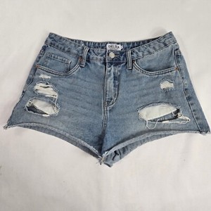 Pantalones Cortos Chelsea Denim Tiro Alto Destruidos Rasgados Azul Jean Shorts Talla 7 Thrash