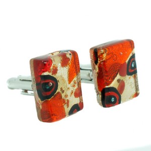 Murano Glass Cufflinks Rectangular Red Green Gold Venice Wedding