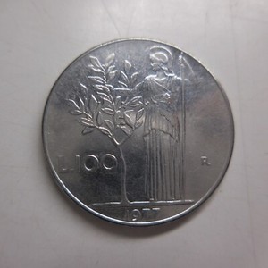 N24.148 pièce monnaie Republica Italiana L 100 lire 1977 métal gris Europe