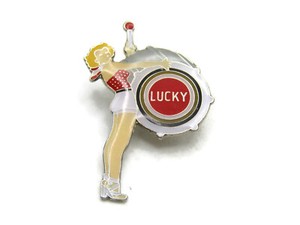 Pin Publicitario Lucky Strike Dama y Tambor Gráfico Tono Plateado