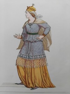 FEMME NOBLE SIENNE ITALIE XIVe SIECLE COSTUME LITHOGRAPHIE 1861 MERCURI L08