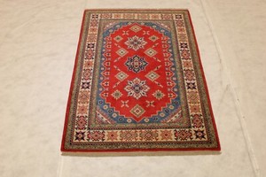 Alfombra de lana tinte natural anudada a mano afgana kazaja de 1'11" x 2'11" pies