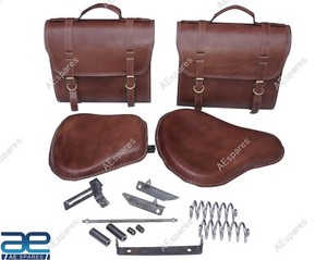 For Royal Enfield Classic 500 350 Brown Tan Front Leather Seats & Bags Pair