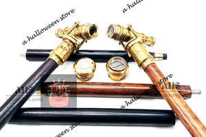 Mango de perilla de latón con brújula en la parte superior victoriano tallado a mano bastón de madera en espiral