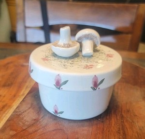 Tarro de setas mayólica Leslie Kanter de colección con tapa caja de baratijas mantequilla Cottagecore