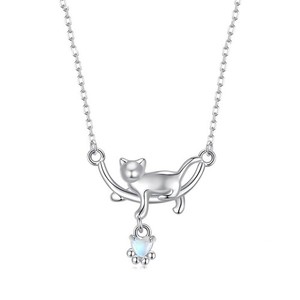 Collar de plata esterlina S925 gato en luna estampado de pata de ópalo colgante regalo para amantes de las mascotas