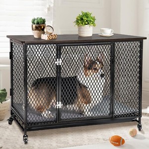 Mueble de interior para jaula para perros, perrera para perros mesa auxiliar móvil para perros