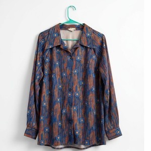 Camisa deportiva Shaker vintage años 70 manga larga estampado geométrico abotonada
