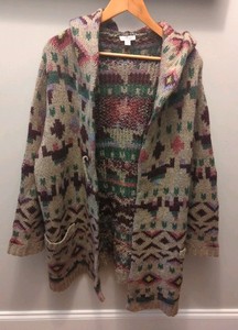 J. Jill Cárdigan Suéter Lenox Abrigo con Capucha XL Azteca Topper Plumero Bolsillos Rosa