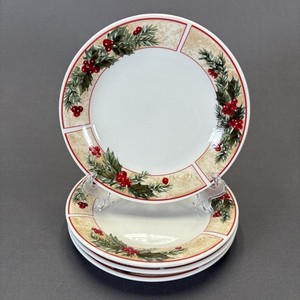 Gibson Navidad Feliz Muérdago Platos de Cena 9 3/4" Juego de 4 Bayas de Acebo