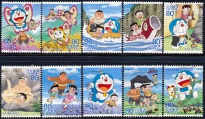 Sellos usados de Japón Doraemon serie 6 juegos 52, 63,80,82,84 yenes