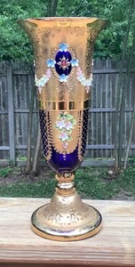 Cáliz esmaltada de vidrio artístico francés Webb Moser Harrach rojo corte a claro ¡Hermosa!! 173,72 EUR