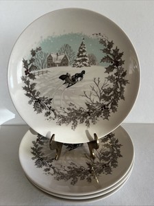 Juego de 4 platos de vacaciones de artista Chad Barrett escenas navideñas sepia trineo de 8" 31,56 EUR37,12 EUR