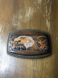 Hebilla de cinturón de águila vintage Alumaline 4108 latón y cuero en relieve BB-317