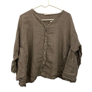 Blusa Hecha en Italia Marrón 100% Lino Talla Grande Cuadrada Abotonada Mangas 3/4